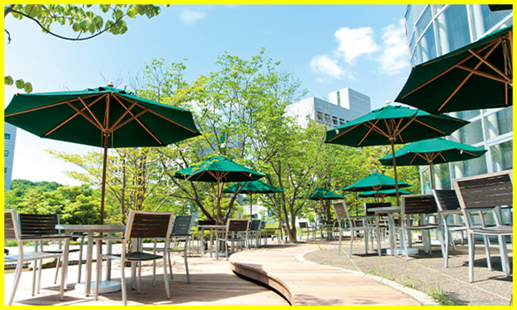 キャンパスラウンジ1階正面玄関付近情報科学領域の学生と交流できるスペースです。飲み物も用意しています。 |