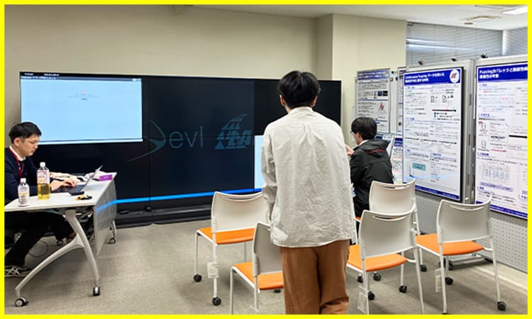 ポスター展示1階ロビー情報科学領域の研究室の概要をつかむことができる展示を行っています。 |