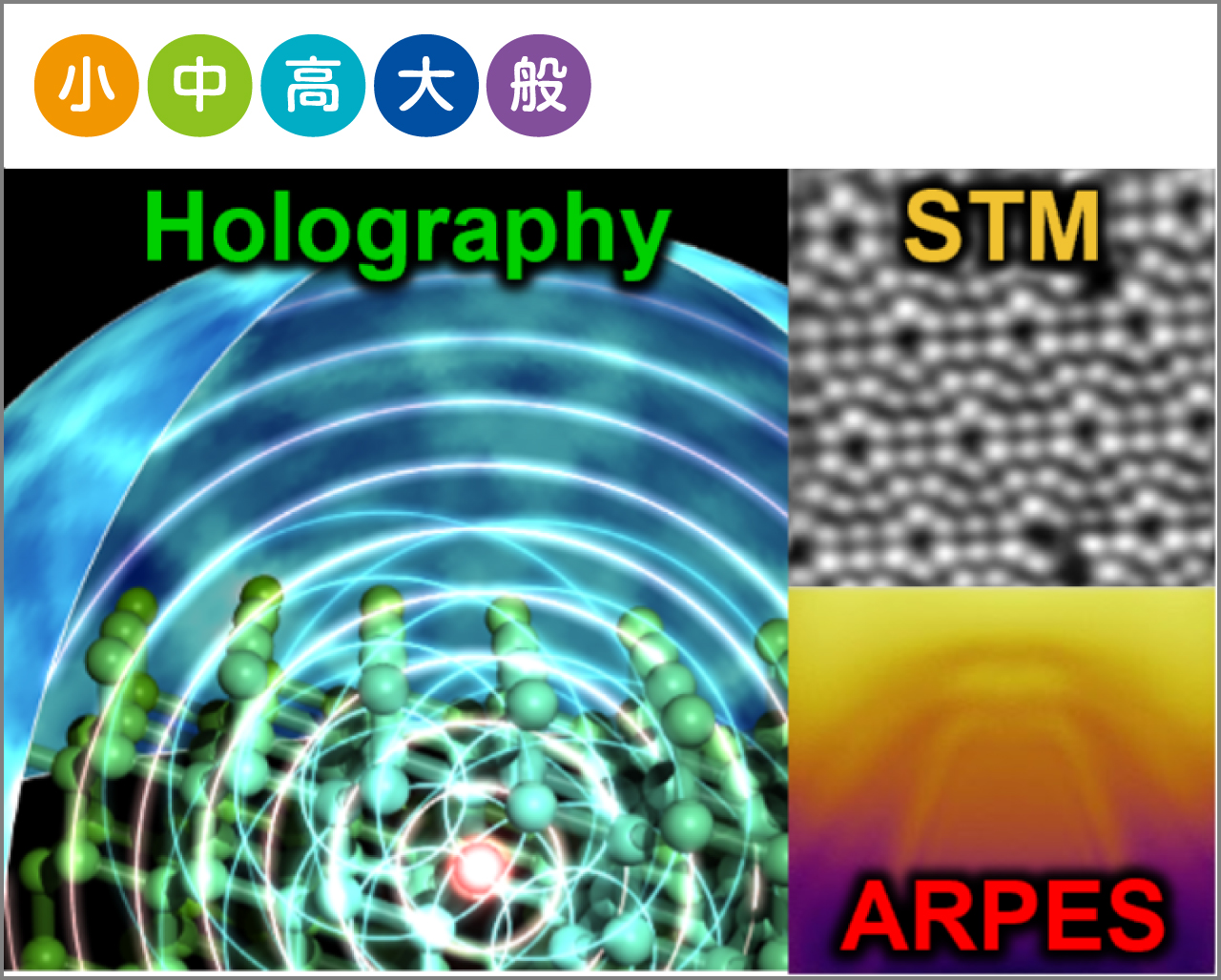 多彩な原子配列や電子物性が現れる物質表面を「新物質」として取り扱いその性質を実験と理論で解明しています。デモ展示では私たちの扱う結晶構造の展示と組み立て体験を行います。