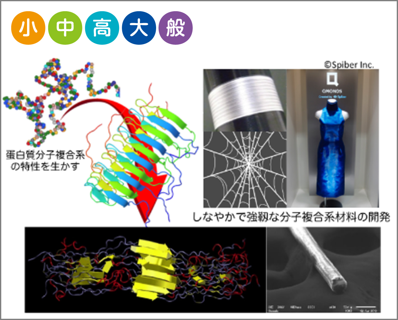 当研究室では、生命機能の中核を担う蛋白質分子集団が示す自律的集合離散を独自手法によって解析し、分子複合系の理解や、蛋白質分子複合材料の創成を目指しています。