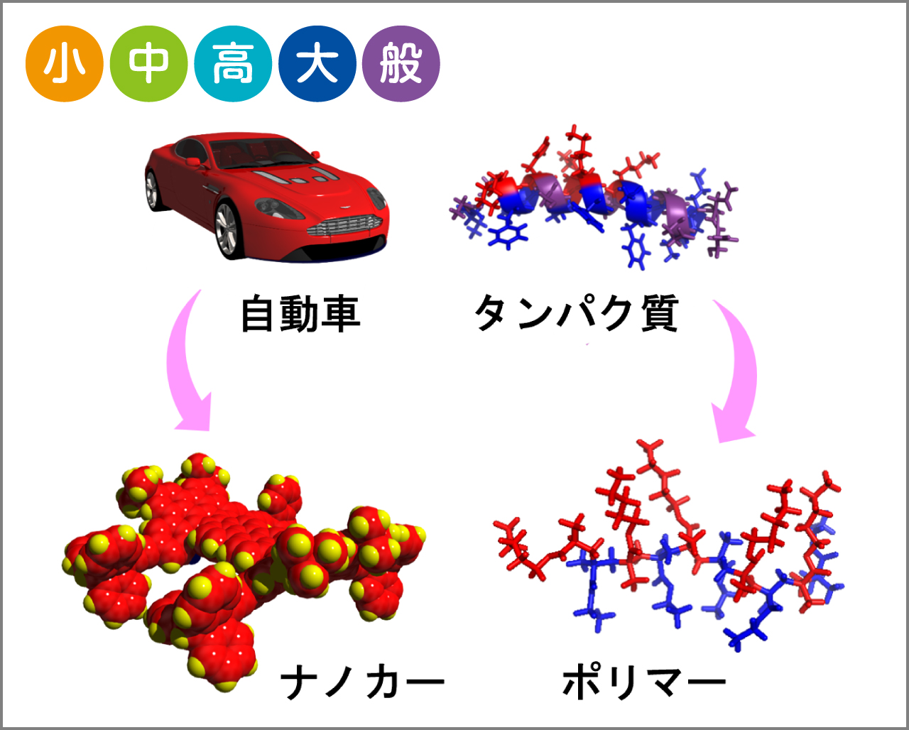 当研究室では、生体内や人工の機械が持つ構造やはたらきを分子スケールで模倣することで、ナノの世界ではたらく分子マシンの開発をおこなっています。当日は、我々が生み出した様々な分子マシンについて紹介します。