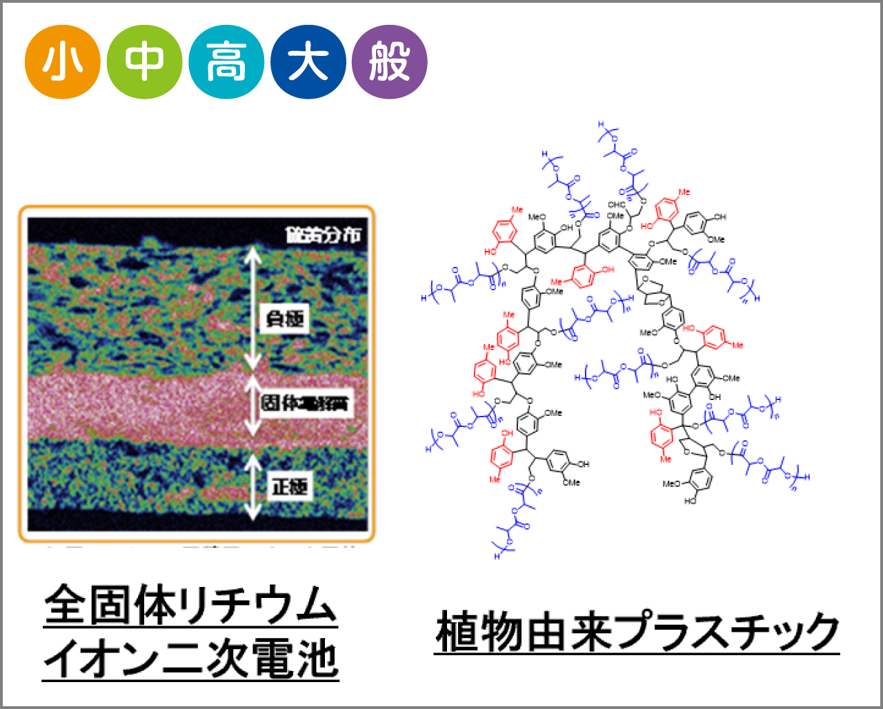 地球の温暖化防止や環境改善を目指し、電力貯蔵の鍵となる安全な全固体電池・亜鉛空気電池や、生分解性プラスチック材料を開発しています。当日は、最近の成果をパネルと応用製品のサンプルで紹介します。