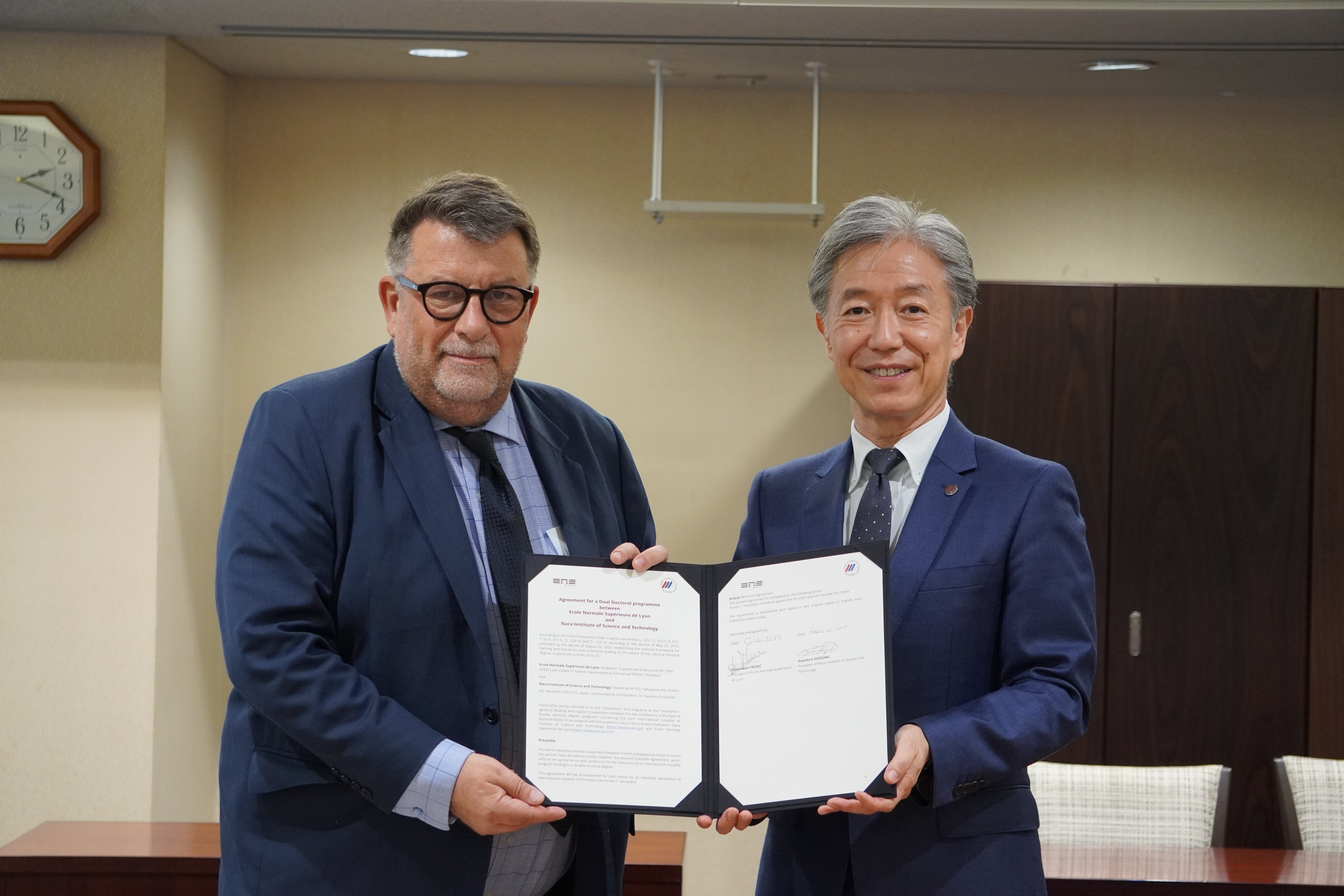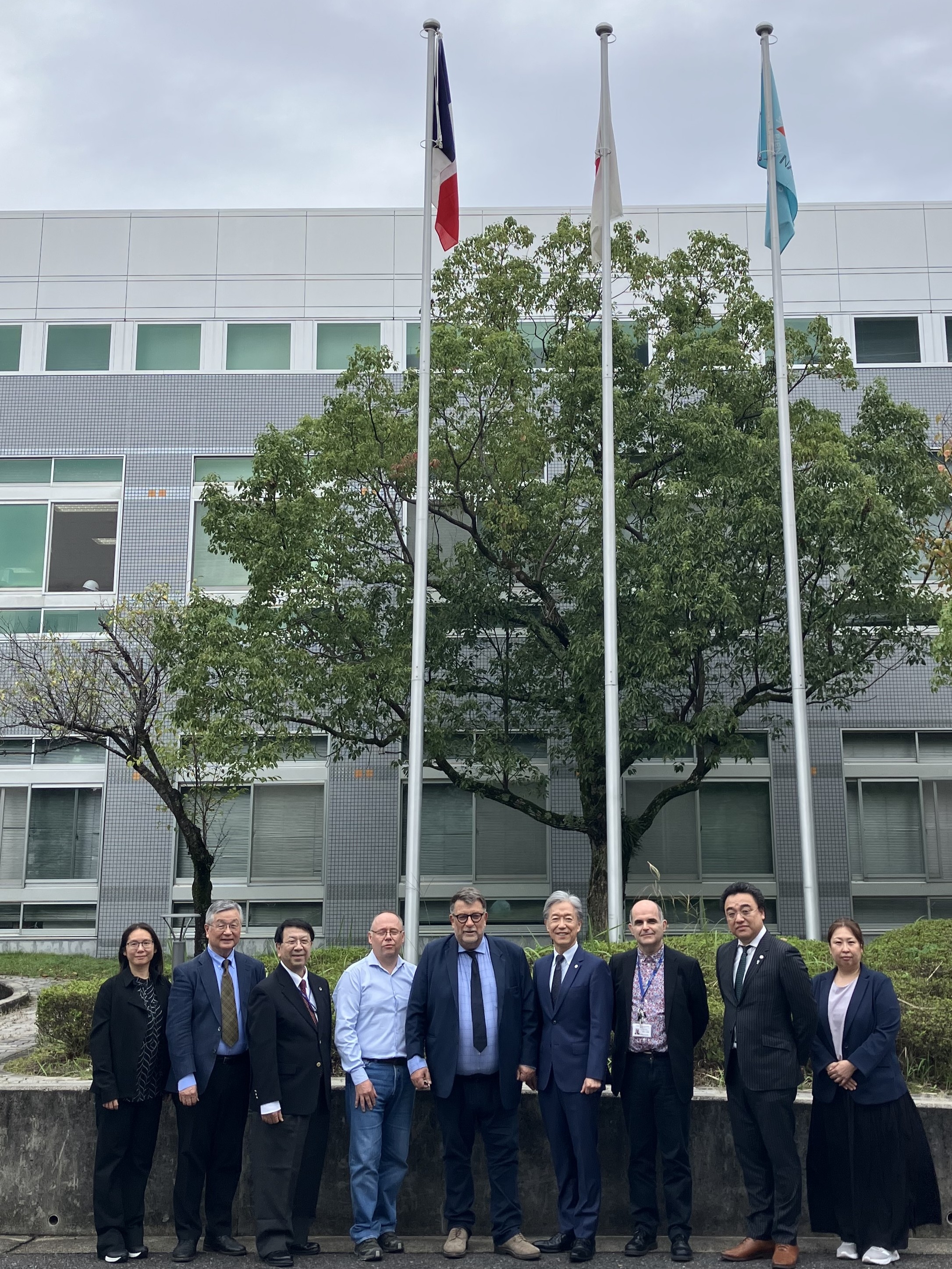 10月20日(月曜日)、リヨン高等師範学校のVincent Michelot国際関係担当・副学長、 François Roudier研究担当・副学長、Karin KIM LIM氏が本学を訪問しました。本学からは、塩﨑一裕学長、太田淳国際担当理事・副学長、真木寿治国際連携・人材開発推進機構・副機構長、Gwenael Rapenne物質創成科学領域・教授、安原主馬物質創成科学領域・准教授が出迎えました。